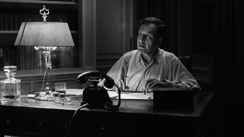 First things first. A Forgotten Man, despite its stage inspirations (Thomas Hürlimann’s Der Gesandte [The Envoy]), is a film made by a cinephile. The clue is the use of black-and-white, in most films now shot in monochrome, the art is often that of a below-average collagist. The awkward and unintended incongruity of the modern- the textures of digital shooting, the film school over-determination of flashy photography- mixing with the old, or what the old is imagined to be, a sort of hyperreal miasma of misremembered noir films. Yet director-writer Laurent Nègre and cinematographer Diego Dussuel wield black-and-white for a clear purpose built on a secure knowledge and understanding of their medium. Their images – and this is not a negative – are fussy, prim, unambiguous, clean, all polished buttons. Why? Because, we are made to understand, this is how Switzerland would prefer to see itself after the death of Hitler: frosted buns, glacial piano recitals and shining cutlery forever and ever.