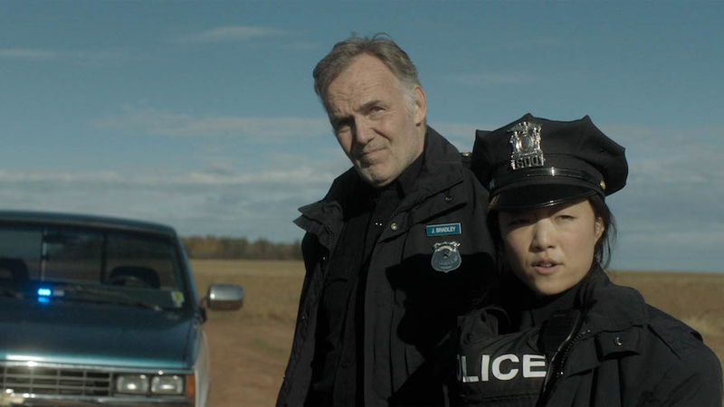 The difference between what Perry does and the Coen Crime Cannon is scale – a scale which Adam Perry’s A Small Fortune is far meeker than. Events take place in a very isolated part of Canada, where the only way to make a living is to leave this dying town, something that Kevin Doucette (Stephen Oates) refuses to do despite the protestations of his pregnant wife, Sam (Liane Balaban). They scrape by, somehow, due to Kevin’s stubborn work ethic. Kevin trades moss with the elderly Omer (Bill McFadden), who sells pot and fishing tackles from a scrapyard. One day, Kevin finds a bag of money on the beach in one of these moss piles and takes it home. In this small town where everyone knows everyone, so when Troy (Joel Thomas Hynes) turns up asking questions, it draws the suspicions of the barebones police force – Jim Bradley (Matt Cooke) and Susan Crowe (Andrea Bang, Kim Convenience & Fresh). With mysterious bodies found and hastily buried to keep the money secret, it all blows up in an awkward, accidental flurry once Troy and Kevin meet.