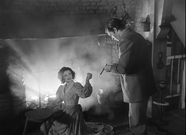 Although the heart of Stephen Vincent’s short story is the climactic courtroom battle between Webster and Mr. Scratch for Jabez’s soul, there’s a sense that Dieterle was more interested in capturing the rhythms of life and milieu – but that doesn’t mean he suddenly develops a slack hand on the material. The sequence takes ghoulish delight in its assembly of unhappy spectres that form the jury, and with this group of famous American cutthroats and traitors Dieterle is able to create some of the strangest and most uncanny images in the history of mainstream Hollywood (the ghostly ballroom dance in Jabez’s new home or the gaunt and drawn faces at the windows of the house being some examples of this). The real feeling though, is out in the fields, in the crooks of those bent trees, and in the contrast between the humble homespun and the mansion on the hill.