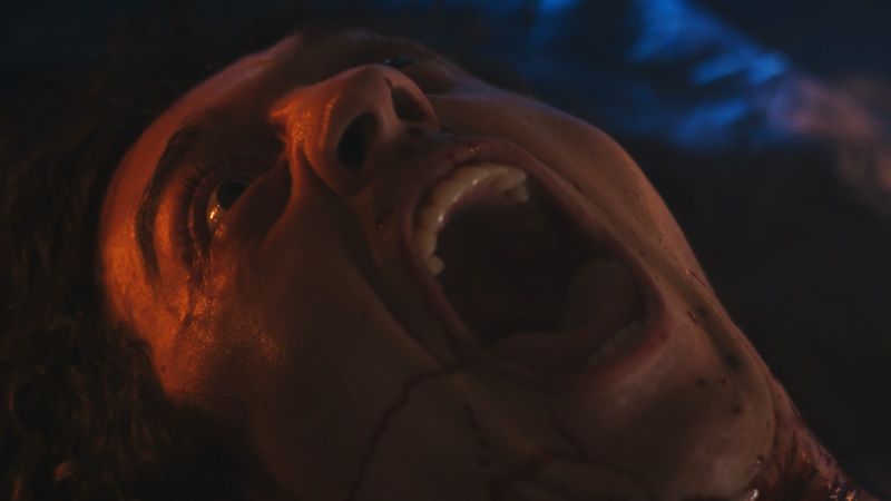 Sara (Tori Wong), intrudes into this narrative, bringing with her the genre elements we’ve been waiting for as she shows more extreme signs of addiction in a movie where overdosing is represented by ‘turning.’ Although she and Eric had known each other before, he left her in her worst state, and as Sara devours her victims in yet another example of modern horror’s increasingly blurred line between vampires and zombies, an interesting question is raised about how much help Eric can reasonably offer her. The addition of Sara proves that Bell has a good understanding of how effective horror can be, but she feels underdeveloped with all of these signifiers put upon her character, and Wong does most of the work to make her seem like a person.