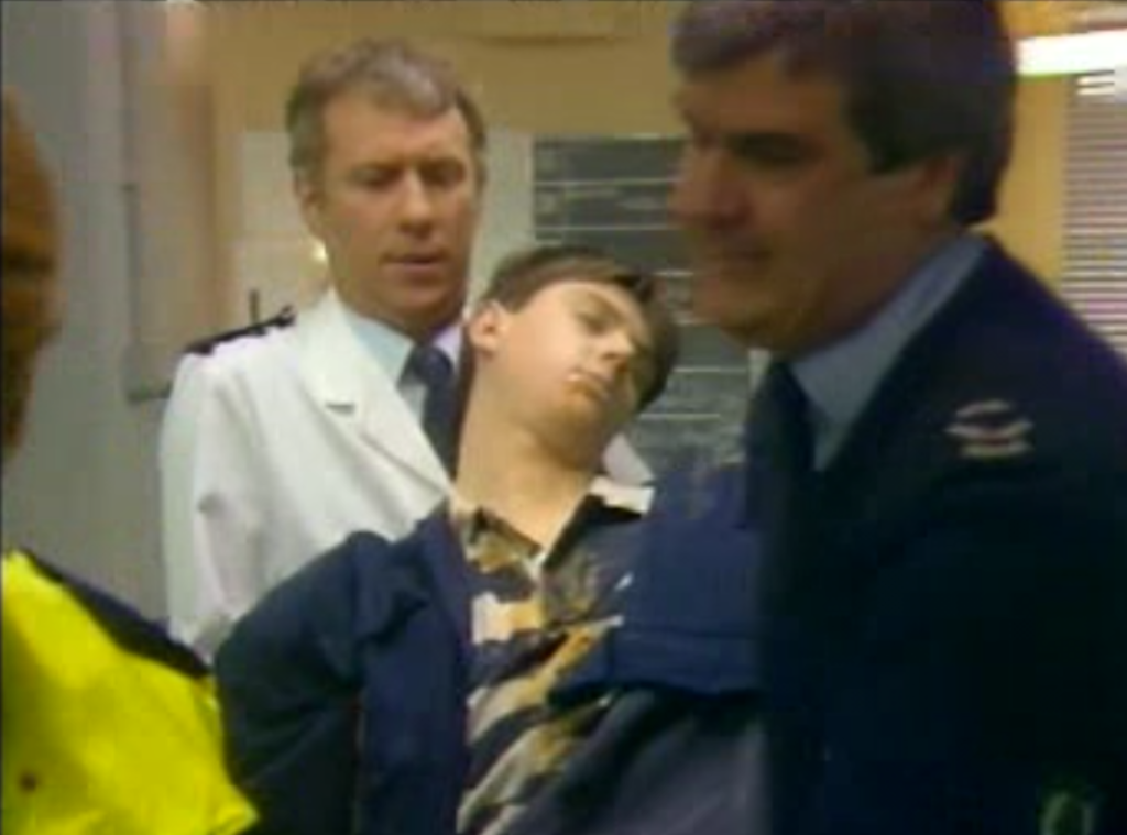 Watching Results and knowing this intention, I’d say Aaronovitch pulls it off rather successfully. By this point, Aaronovitch is correct in saying that Casualty had developed a winning formula; a mix of the game audiences loved to play that could best be described as “spot the victim” or “guess the accident”, and issue-led drama. As Peter Norris said in Hilary Kingsley’s 1993 book Casualty: The Inside Story, the early years of the show had focused specifically on the political situation of an under-funded public health service;