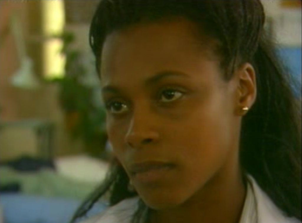 Aaronovitch’s personal traits as a writer can also be seen in this episode. Married to an African lady and long considered something an Afrophile, Aaronovitch’s work in both televised Doctor Who, specifically Battlefield with the introduction of Brig. Winifred Bambera, and his later New Adventures novels in the 1990s, did much to incorporate African culture into the tapestry of an otherwise very white, western show. Aaronovitch brings similar diversity into this episode of Casualty by making not only his registrar character African, but also one of his patient characters too. Mrs M’Bete (Isabelle Lucas) is in the A&E having great difficulty in sitting down due to an abcess on her posterior. An X-ray subsequently reveals that there are some long embedded shotgun shells – a relic of her life in apartheid-devastated Sophiatown in the 1970s – that have now risen to the surface of her bottom to become acutely painful. Pleasingly, this character allows us to see a different side to the department’s newly arrived uppercrust and aloof surgical consultant, Julian Chapman (Nigel Le Vaillant), when he shows not only a warm bedside manner to the patient, but also corrects his Houseman Dr Beth Ramanee (Mamta Kaash) over the pronounciation of her surname – a familiarity that surprises her, but also suggests a colonial upbringing. Again, there’s a sense of life not playing out as it ought to have been, as Mrs M’Bete has found herself an exile “a cold country” like the UK, rather than remain in the home nation she hopes she will one day return to.