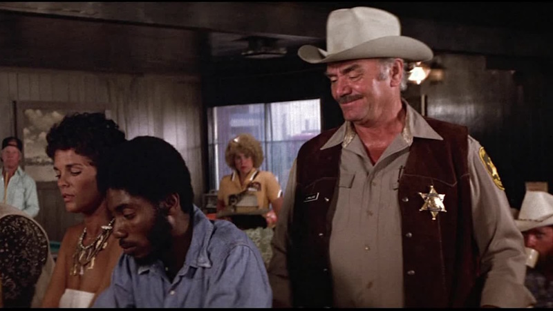 As you’d expect from a film about rebellious eighteen wheel truck drivers living out some fantasy about how the West was won, Convoy doesn’t afford the women in the cast much to do, but it’s nonetheless refreshingly free of much of the misogyny that Peckinpah would normally direct at female characters as we saw in the likes of Straw Dogs and Bring Me the Head of Alfredo Garcia. Madge Sinclair’s ‘Black Widow’ is depicted as a confident, articulate women with her own agency, but that agency exists to remind the other characters and the audience that she is Black and little more. Nevertheless, that’s still an improvement on the film’s leading lady, Melissa (Ali McGraw) and the character of Violet (Cassie Yates), wife of Sheriff Lyle and sometime girlfriend of Rubber Duck.