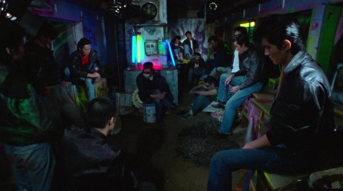 This, of course, makes Jin a really interesting and unmistakably punk protagonist, one who meets all forms of institution and order, be it the nationalists themselves or Ken’s newfound domesticity, with derision and contempt. Whilst he’s never wholly likeable (again, pretty punk – who among us could ever truly claim to like a figure such as Johnny Rotten, and why should he care if you did or you didn’t?), Jin nevertheless has his own principles – to be his own master – and his refusal to waver, plus his spirited commitment, makes him a character worth rooting for and he is winningly played by Yamada, a walking middle finger in a leather jacket. Incidentally, whilst the bikers may look like they’re extras from Grease or Happy Days, it is worth pointing out that the punk aesthetic here is definitely that of The Clash and the music fits accordingly too.
