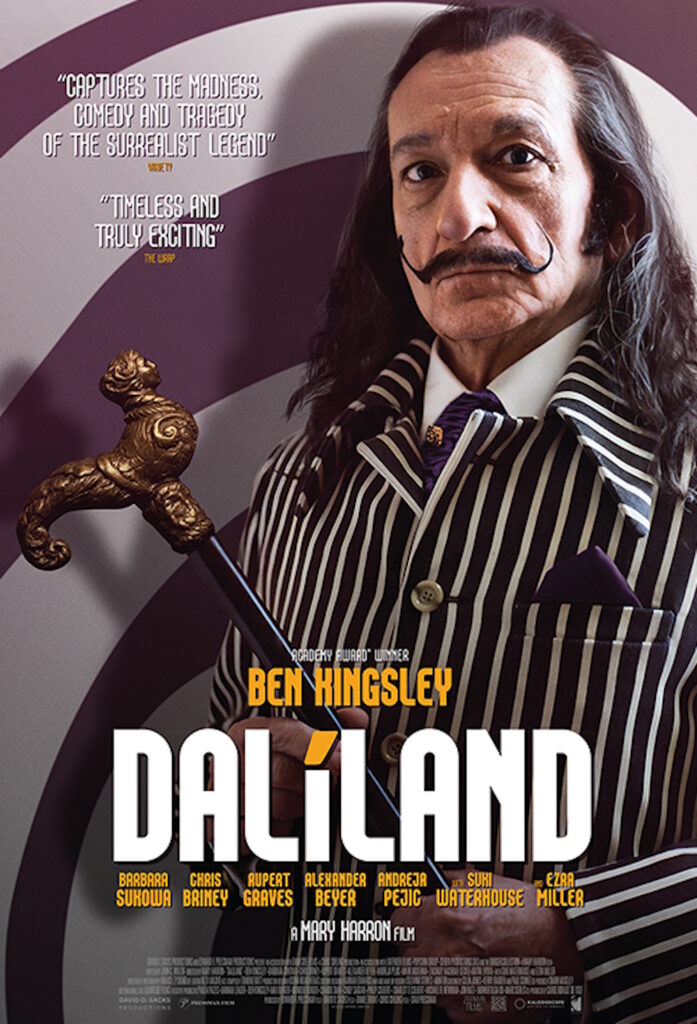 Daliland is not likely to give the viewer any great insights into Salvador Dali, played here by Sir Ben Kingsley, partly because it’s a drama and is therefore both an invention and inherently distanced from the events it portrays, but also because the figure of Dali remains somewhat impenetrable. While this could seem frustrating, it’s a wise move by director Mary Harron who, rather than attempting to give a warts-and-all portrait of Dali, focuses on the fictional figure of James Linton (Christopher Briney) – a gallery assistant tasked with assisting Dali during his annual visit to New York in 1974. Through James’ eyes we see Dali’s tempestuous relationship with his wife Gala (Barbara Sukowa), as well as the different aspects of the art world.