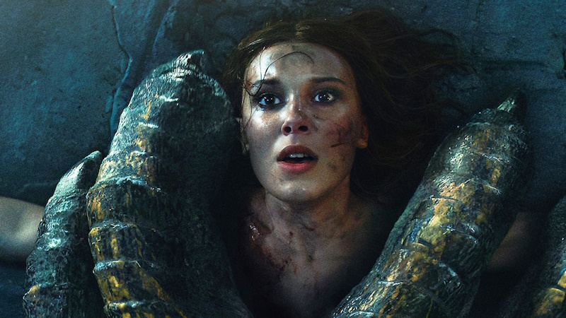 In fact that’s actually something I think is quite notable – how bloody this gets. OK, it’s a 12 and you can get away with some more hard-edged stuff than your normal family fantasy, but this dragon is digging its claws into people’s bodies and burning their legs beyond recognition at any chance it gets. It’s something to bear in mind if you’re watching this with your kids, but sometimes it can feel a little desperate. It’s like the scriptwriter Dan Mazeau is thinking that the plot’s getting a little boring so a dragon stabbing Millie Bobby Brown in the side will make the viewer feel more alarmed, and I suppose that’s true (since it’s the only time in the film where I gave a damn), but the fact that a bit of extra violence is the only thing Mazeau can think of as a little worrying, especially when he’s trying to pad this out to feature length.