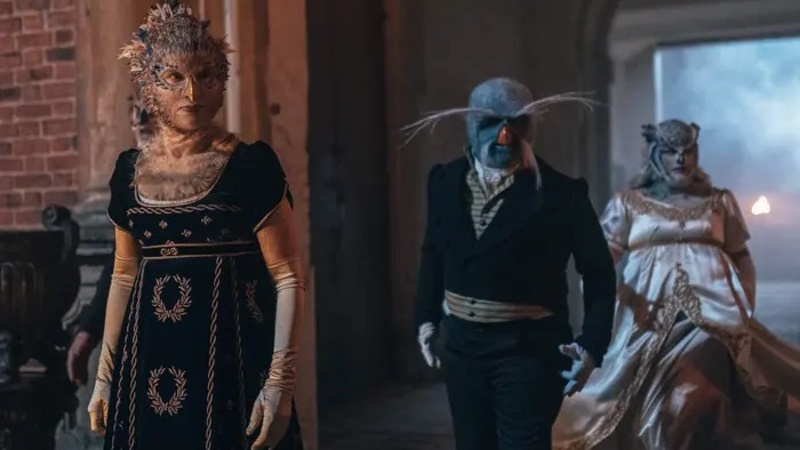 Now we must of course discuss the most notable member of the guest – Jonathan Groff. Here he plays the titular mysterious Rogue, an alien bounty hunter who has infiltrated this swanky party to capture the Chuldur, an alien race of shapeshifters who in their true form look like humanoid birds (and I must say the make-up for them is fantastic). Groff is possibly the biggest get of the whole era so far, even bigger than Yasmin Finney and Neil Patrick Harris in the specials last year. He’s an astounding Broadway talent who owns every single second of Hamilton that he’s in, and let’s face it, he’s not even in it that much. Every single scene between him and Ncuti here is pitch-perfect. Groff’s got a quiet swagger, some amazing inflections and facial expressions, and a Doctorish personality to him that has all the potential to be built upon further because yeah, we definitely haven’t seen the last of him.