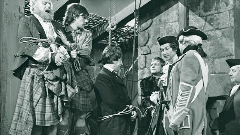 All these disguises lead us to the other consequence of making the Doctor a more prankish character: it further destabilises our sense of who he is these days. Remember, this is only Troughton’s second story. Other Doctors would spend their sophomore outing facing a moral dilemma (The Silurians, The Beast Below), guiding companions through emotionally troubling situations (The Ark in Space, The End of the World) or facing off against a familiar enemy (Attack of the Cybermen, Into the Dalek). All of these story types are designed to reassure us that this new Doctor is the same person, but The Highlanders doesn’t do that at all. Rather, it foregrounds what’s different about the Second Doctor, establishing that our hero is now someone who will land in a war zone and – once he’s checked his companions don’t want to leave – will run into the middle of it to cause even more chaos. It’s a startling characterisation, but also an intoxicating one.