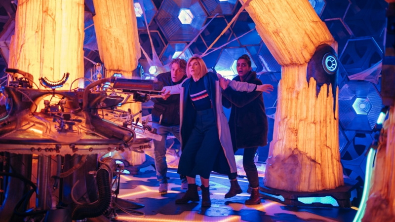 Back in the room, Swarm and Azure reveal their unspeaking humanoid companion ‘Passenger’ is basically a Genesis Arc (last seen in series 2 finale Army of Ghosts/Doomsday) capable of housing thousands of hostages but currently just containing Dan’s date Diane which makes dashing Dan come over all heroic and confront the evil duo before being yanked back in line by the Doctor. John Bishop should stick to stand up as this is some very questionable acting on display here. Anyway, the villainous siblings take Passenger (and thereby Diane) and disappear as the Doctor angrily stomps back to the Tardis, having a proper pop at Yaz on the way when she dares to ask a question (this is now a very toxic friendship) and flies Vinder home to his Flux ravaged planet. Guess what – it’s the same one Bel was from and guess what – that message he recorded was for her and (we’re not done) guess what – she’s pregnant with his baby and guess what (last one, I promise) – that Tamagotchi she’s been carrying around is a communication device for their unborn baby! Yes, in the future even invitro you can send emoji’s to your mum. Vinder gets given a mobile phone to contact the Doctor on, so it’s a safe assumption that he’ll be using that in the next few episodes. He better be careful with it though, as Yaz finds out when the Angel who was following her pops out of her mobile phone and takes control of the Tardis, setting sail for episode 4!