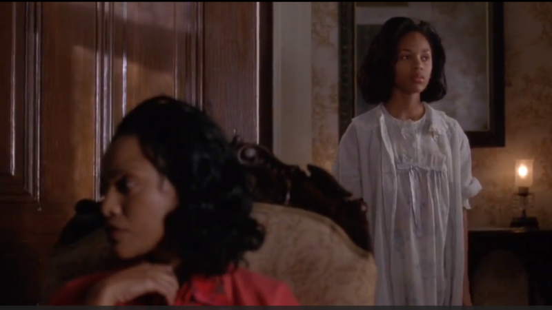 This road winds through the Louisiana swamp, which Lemmons uses to create an environment of both expanse and enclosure. The open sky is juxtaposed with trees both tall and broad, that offer a rich playground for Eve, Cisely and their younger brother Poe (Jake Smollet) while also entrapping them. Long and medium shots of women with water behind them indicate the narrow passages upon which they must tread carefully. This entrapment reinforces the fateful visions of Mozelle and the ominous warnings of local fortune teller Elzora (Diahann Carroll). With a slow and measured approach, Lemmons conveys both the steady disintegration of Eve’s innocence as well as the maturation of Cisely, the adult characters largely seen from the children’s perspectives as heroes and villains that shift roles as these perspectives changes. A few of Lemmons’ directorial choices clog the film somewhat, especially when violence takes place as the editing jars, at one point on a literal jar. Then again, the disjointedness of violence does suggest the psychic wounds inflicted by trauma, trauma which in this case wounds even before the events take place.