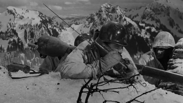 In one of the best sequences, a shaking, distraught soldier finds himself unable to go through with killing a Korean soldier. He’s saved when one of his comrades shoots the enemy, then allows him to take the credit when they get back to camp. For all Fixed Bayonets! has a very high quota of action indeed, Fuller never loses sight of the human toll, which weighs on Americans and Koreans, killers and killed alike. The violence is quick and unsentimental, and each explosion comes with a controlled camera shake – closer to an earth tremor than modern hand-held cinematography.