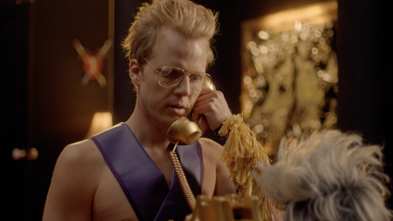 Better still is Kostanski’s book of visual references he’s gleefully drawing from here. The Freakos are pure Charles Band, recalling the grotesqueries of Head of the Family or Puppet Master’s legion of diminutive monsters, and their diverse range of abilities and appearances fuelling the grievous bodily harm screams Joe Dante’s Small Soldiers. One late-in-the-game trip to the distant planet of Freakworld also recalls (for better or worse) the ill-fated Super Mario Bros. and its topsy-turvy urban nightmarescape, and its inhabitants halfway between the argh-god-what-the-hell-is-that Koopas and Battlestar Galactica’s Cylons. There’s a great pleasure in finding out what was in Kostanski’s VHS collection as a kid, and he clearly has the same good taste nowadays in the way he weaves together the references into something more than just a list of recommendations. His masterstroke is a sly music cue that becomes a running gag in itself; Frankie’s hotline is scored by a sensuous synth track that recalls Pino Donaggio’s indelible ‘Telescope’ theme from Body Double, being used in increasingly absurd and sexually bizarre ways as the action escalates. Kostanski knows the context, meaning and comedic power of his references, and that’s a rare skill behind the camera when so many other films turn their inspirations into derivative copies, rather than using them as a jumping-off point and building something of their own.
