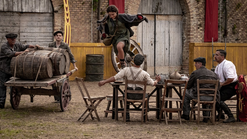 The opening scene showcases this beautifully with an almost entirely dialogue-free sequence that introduces our four leads as they perform for a crowd. Cencio, who “works with all the insects except bees, which piss me off” – a self-description that summarises him accurately; Mario, a literally magnetic clown both on and off the stage; Fulvio, the gruff super-strong wolfman; and Matilde, an electrifying (again literally and figuratively), acrobat. After this the Nazis abruptly and violently blow up the tent and the town itself, which sums up the approach of the film as one where whimsy and fantasy is intruded upon by the horror of Nazism.