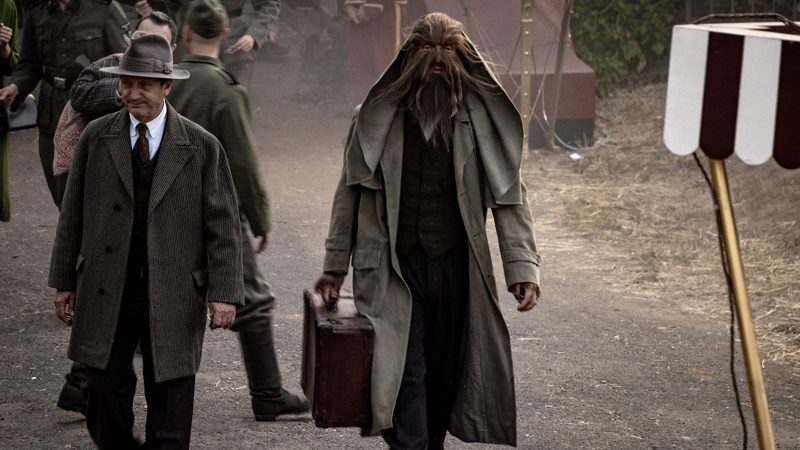 After being shown around festivals (including Glasgow Frightfest in 2022), under its original title ‘Freaks Out’, Freaks vs the Reich has finally been released in the UK. Changing the title to something more eye-catching and B-movie like means the film is more likely to reach a wider audience. It can also seem more offensive and bad taste than it is – as described in one harsh Guardian review (that also has multiple errors about the plot but I won’t be petty and list them all), when in actuality the film is entertainingly ambitious. Despite its intimidating running time (two hours and twenty minutes), it flies by with spectacle, action and gripping storytelling – as Israel, the ringmaster of the titular freaks, tells his audience at the start, here “imagination becomes reality”.