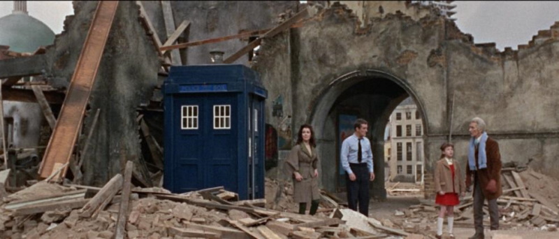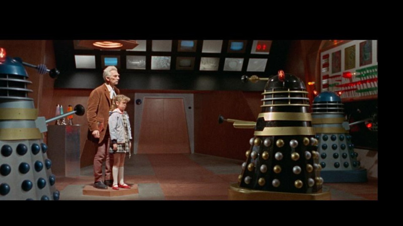 Scientist Doctor Who (Peter Cushing) invents a time machine disguised as a police telephone box, which he calls the Tardis. When activated, the Tardis transports the Doctor, his granddaughters Susan and Barbara and Barbara’s boyfriend Ian, through time and space to the planet Skaro, where the peaceful Thals face nuclear attack from the robotic mutant Daleks. This first of two films based on the television series also stars Roy Castle and Jennie Linden and is directed by Gordon Flemyng.
