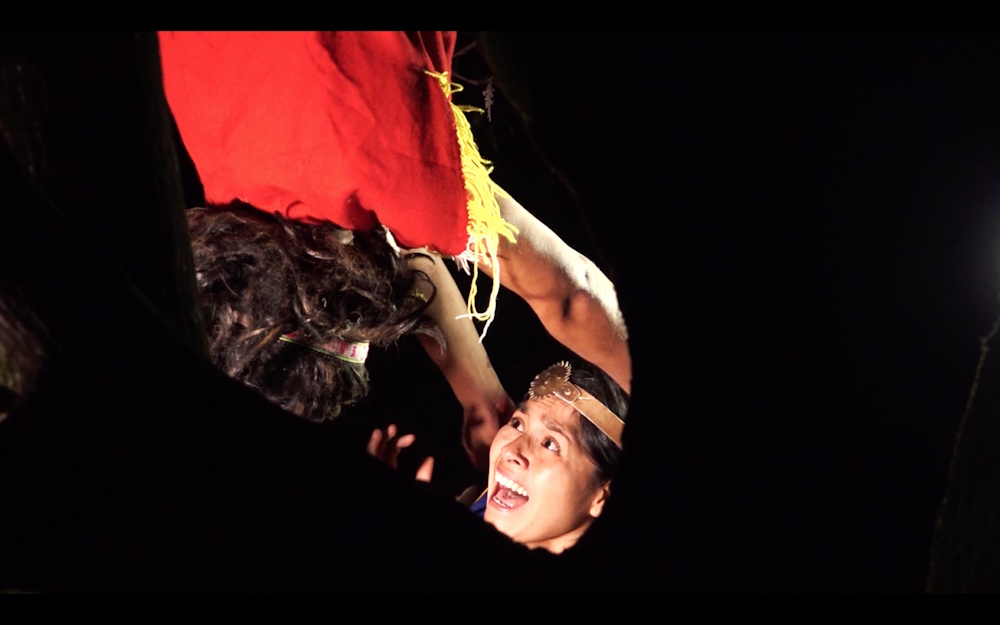 Other mechanics also populate the documentary, such as the challenges of weather and location including forest, river, rocks and transportation. Once on set (as it were) we see the painting of stage blood, cast and crew waiting to shoot, actors asking about their mental state and getting into costume. These costumes look cheap yet are still recognisably ‘Incan’, and an improvised camera rig as well as a montage of other equipment, including VHS cameras and bulky computer monitors, plus moments of editing footage on a home TV in a rundown room filled with various types of junk, all add to the amateur charm. This amateurishness extends to Dietrich as well, as at one point we see the reflection of a boom mic as Martin goes around the town in search of his actors. However, remembering that opening text, this is learning about the practice of filmmaking, and seeing problems like this does provide that insight.
