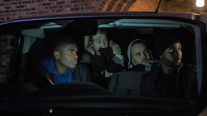 From the outset and going by the premise alone, it’s safe to say that Hounded isn’t exactly the most original idea out there. However, in all the small budget woes that a film of this nature can potentially face, the film gets by with this nuanced sense of character and playfulness that makes the film both charming and gleefully sadistic when the blood and guts begin to show themselves. The central group of young thieves are all given minimal backstory but throughout the film, we’re given clues as to how or why they are in this criminal position whether it be out of desperation or some deep-rooted trauma in their lives. The character of Leon is committed to ensuring that his brother, Chaz (Malachi Pullar-Latchman) can go to university to study without the fear of crippling debt. The relationship between the two brothers is the heart and soul of Hounded and lends itself well to the care that the viewer can place on them as the film ramps up its nail-biting tension.