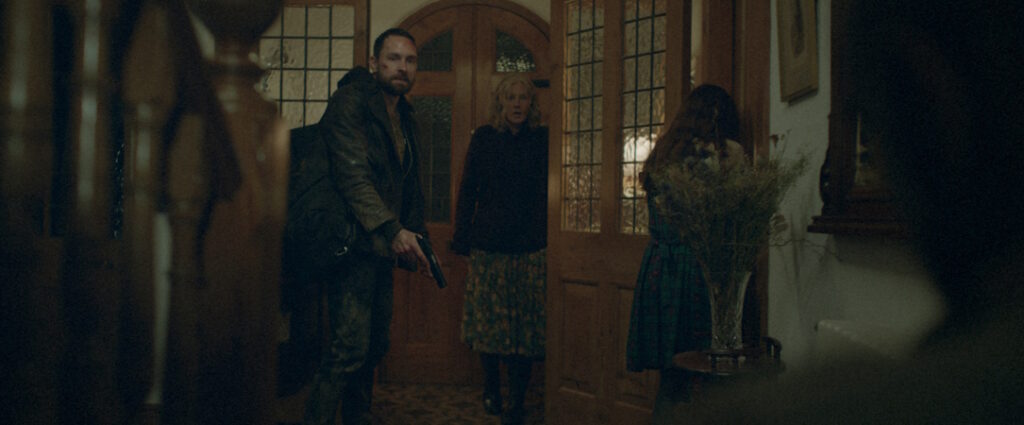 For most of its runtime, Little Bone Lodge focuses on the interpersonal, which is manifested by psychological and body horror. When it does this, the film is gripping and gruelling, revelations are horrific and character choices consistent. Where it starts to fall apart is, perhaps unsurprisingly, when the scope expands outwards and we leave the confines of the house. There is a crime thread to the plot that brings in extraneous elements and feels forced, spoiling the claustrophobia with a finale that is more reminiscent of A Fistful of Dollars than Straw Dogs. While the coda attempts a return to the earlier menace, it stretches credibility and feels discordant, leaving the viewer wondering, ‘Hang on, how did