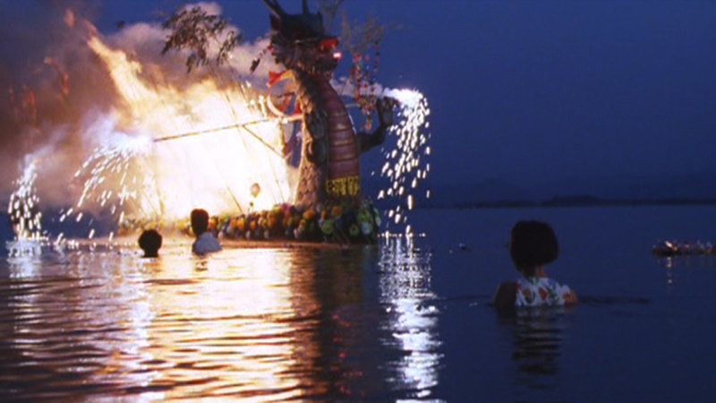 Everything about this film breathes collapse and decay – the environment, the society the characters live in, even the characters’ own mental states. The very few occasions we see anyone expressing any kind of joy is during Sensaku’s violent, to-the-death wrestling matches, scored by the very serene operatic soundtrack we were introduced to within the first seconds of the film’s opening. In a strange juxtaposition to the destruction we are witnessing, each defeat (read: death) of Sensaku’s opponents is celebrated gleefully by confetti and a parade of young people dancing in costumes that might remind one of circus performers, as the fighting sound effects are exaggerated and cartoonish. This ballet between violence and beauty is at a constant, as if violence is the only way anyone knows how to express themselves – especially, perhaps unsurprisingly, the men.