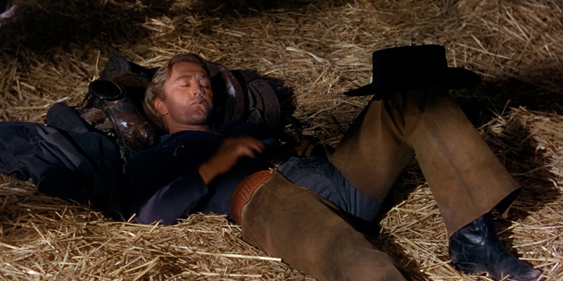 Released in 1955 A Man Without a Star was one of Vidor’s final films and released just a year before he would embark on his epic adaptation of War and Peace. In comparison this film is very different – it has a small scale and runs a lean 90 minutes. The film stars an incredibly charismatic Kirk Douglas who plays a gunslinging drifter named Dempsey who at the start of the film is a stowaway on a train going to Wyoming. On this train he meets a young and impressionable man named Jeff (William Campbell), Dempsey takes him under his wing and teaches him the ways of the West.