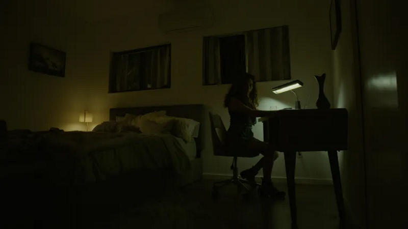 Despite these problems, Mean Spirited has potential and might well have worked were it more stylistically immersive. The location and production design are effective, as the house allows for many evocative spaces including a gorgeous patio. Production designer Kelsey Hannah Walsh adorns the various areas effectively, especially a derelict hotel that looks as though it emptied very suddenly. Suggestive decorations and furniture ensure that Bryce’s home looks lived-in though able to receive guests, while also being the site of something otherworldly. This otherworldly presence seeps into the film gradually, with simple but effective indications that something is changing.