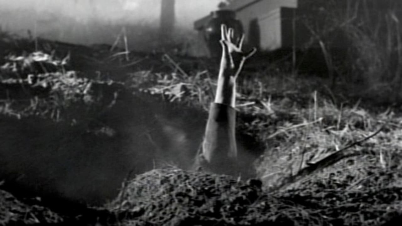 The first film, Black Pit of Dr. M – also known as the more accurately translated title Mysteries From Beyond the Grave (1959) – begins with narration as the camera scans over a building in ruins. It tells us that this is a true story about “a strange man of science” determined to know what lies beyond death. As his colleague, Dr Jacinto Almada, is dying, Dr Mazali reminds him of their scientific agreement that whoever died first would attempt to make contact afterwards. A séance takes place as Almada is buried, and in summoning his spirit, Mazali begins a spiral of events that get increasingly strange and twisted as the film goes on.