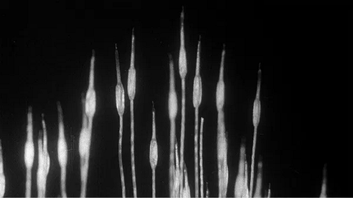 It’s worth watching the full short films by Smith and Field included as bonus features on this BFI dual format edition in order to get the measure of what Staples has done. They include The Strength and Agility of Insects, the 1911 film that first impressed Staples, and also several later films from the sound era. Comparing a Smith and Field talkie like 1942’s The Life Cycle of the Newt to Minute Bodies, it’s immediately obvious that the former is constrained by the documentary format. The microscopic photography remains hugely impressive – particularly in this restoration – but the RP voiceover and pedagogical intent dates the film considerably.