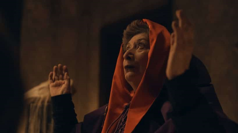 The investigation conceit makes for an intriguing delivery, effectively captured within a drab mise-en-scene of the decaying mansion that mirrors the Baroness’s decaying body and mind. She is first glimpsed behind a diaphanous curtain, and Maux plays her as something of a Miss Haversham figure, distant from a world she does not participate in. Yet as events develop, more warmth appears from the character, as well as more interest and resolve. As more malevolent aspects appear, Maux imbues the Baroness with an almost hungry air, ironic as she rarely shows interest in eating. As Otto, Nickel strikes a balance between melancholic and menacing, a key conversation taking place between Otto and Sigrun in the film’s second act where Nickel offers nuance behind his sinister goatee.