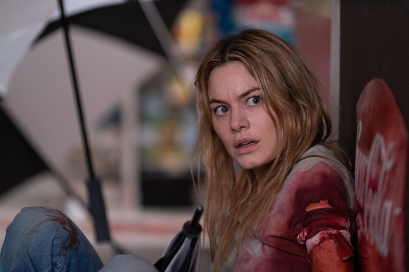 Directed by Franck Khalfoun (2012’s Maniac), and co-written by Rubén Ávila Calvo & Glen Freyer (along with Khalfoun), Night of the Hunted is a simple tale of Alice (Camille Rowe, The Deep House), a young woman besieged in a roadside petrol station by a mysterious sniper, who hails it with bullets. As the bodies pile up, she has to figure out who the hidden gunman is before her attacker decides to end things. While unquestionably similar to Phone Booth (Schumacher, 2002), and Downrange (Kitamura, 2017), Khalfoun’s movie differs by taking place at night in the middle of nowhere, and, vitally, everything is in service of the politics.
