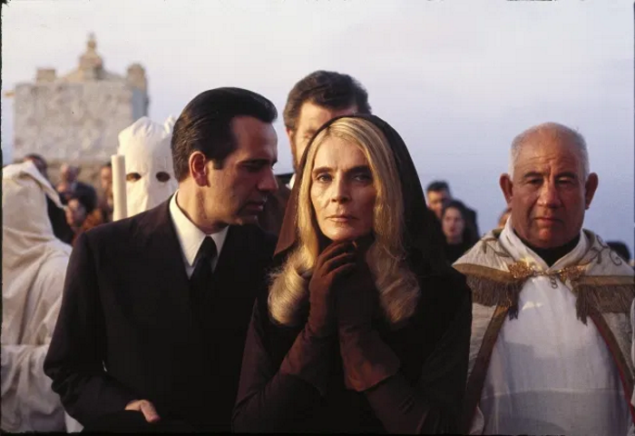 Hodges’ tale concerns a past scandal and the murky cover-up attempts made by those responsible, principally Prince Frank Cippola (Victor Mercieca) of the fascist New Front party, who has been hypocritically swept to power on a hard-line law and order ticket. He blends into the storyline some enjoyably subtextual nods to noir cinema such as Rooney’s Preston Gilbert, a man whose public image as a screen gangster and personal life got blurred in the same way that George Raft’s had, and with the casting coup of Lizabeth Scott, returning to cinema one last time and some fifteen years after her last picture to portray the purring femme fatale ex-wife of Gilbert and the current wife of Cippola. There’s even a role for acclaimed Bogart lookalike Robert Sacchi as an FBI agent visiting Malta, credited only as ‘The Bogeyman’ . “What kind of bird is that?” he asks at one point towards the close of the film. “It’s a Maltese Falcon” is the reply. The quirky nature doesn’t end there either and there’s a delightful cameo from Dennis Price as a fellow Englishman on King’s coach tour who is utterly obsessed with Alice in Wonderland, having read it 117 times and quotes liberally from it. Pulp proved to be one of the visibly ailing Price’s last film roles and it is infinitely superior to the exploitative horror fare he was making elsewhere at the time. His pithy reaction to two dimwitted Texan tourists over dinner is a joy to watch. There’s also a similarly delightful score from none other than George Martin.