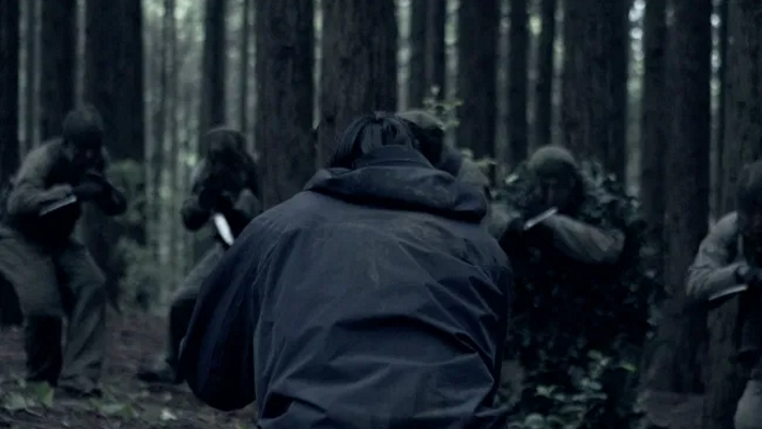It is a violent martial arts film, so it is probably time I got around to talking about its main feature. Whether it’s by Sakaguchi himself, his peers or by the child soldier who Ohtsuka brought along (Makoto Sakaguchi), there is a lot of throats getting slit in knife-to-knife combat. Martial arts cinema often obeys the historic style of armed and unarmed combat, the new military developed martial arts never get a look in. This is primarily because new military arts are designed for purpose over style. Zero Range combat has its practitioners hold their arms in a defensive position not too dissimilar to Wing-Chun only in one of their hands is a very sharp, curved blade. This is 100% a killing art.
