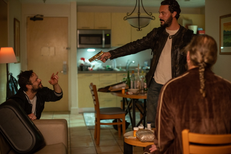 After the opening nailing, we flashback to (very) aged Sheriff Church (Robert De Niro) channelling Tommy Lee Jones from No Country For Old Men about how things used to be not so bad and now death is everywhere. Everyone involved in this film looks thoroughly foolish to have invoked the Coen Brothers’ masterpiece. We then meet Shelby John (Jack Huston) and Ruby Red (Willa Fitzgerald), a couple of junkies who get engaged and decide that this is the motivation they need to get clean. Cue a cold turkey montage of these lovebirds shivering and sweating, hating each other but loving each other and letting us learn that true love beats addiction! Except it doesn’t and when things turn bad, Shelby goes on a mission of, you guessed it, savage justice.