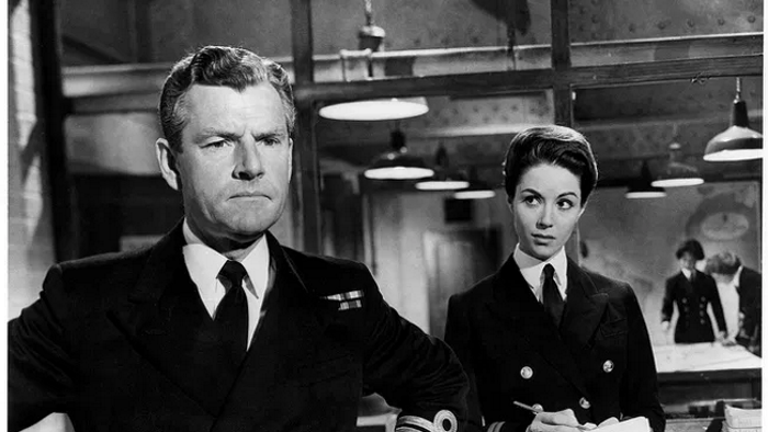 It’s worth noting that Shepard didn’t actually exist. The real Chief of Operations responsible for the hunt for the Bismarck was Captain R.A.B Edwards; the inclusion of a fictitious character like Shepard is a necessary invention to add a touch of human interest to the proceedings. More delivers a restrained and quietly affecting performance of an officer described by Laurence Naismith’s First Sea Lord as “cold as a witch’s heart…cold with no heart or soul, just an enormous brain” and thereby possessing the right stuff for commanding the war room’s operations, where life and death decisions are to be made. Shepard’s cold nature is slowly revealed to audiences across the film to be the result not only of his damaging previous experience of Lütjens, but also because he returned home to find that his wife had been killed in a German air raid. From then on, Shepard made a conscious decision to never be emotionally involved with anyone else ever again but, by his own admission, he overlooked one thing – his own son. Played by an uncredited John Stride, Shepard’s son just happens to be an air gunner in the Ark Royal‘s Swordfish Squadron and, when he’s reported missing after a skirmish with the Bismarck‘s, the aloof Shepard thaws before the eyes of Wynter’s sympathetic Wren, Anne Davis. More excels in his depiction of a traditional stiff upper lip hero, scarcely able to hide his emotions.