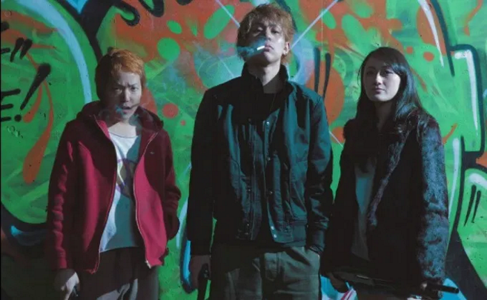 The machine gun editing employed in those musical montages reoccurs in certain flurries of violence, the first hour is punctuated by erratic out of blue violence enacted by inexperienced kid’s victim to their circumstances. The second hour is much more controlled with the repercussions of Joe and Asu’s actions unleashing the unforgiving brutality of Slum-Polis’ powerhouse Yakuza family. That contrast between worlds sees the young director at his best; recognition also deserves to be bestowed on DOP Shota Yamamoto. Budgets can be especially cruel on films with ambition; comparable works are only credible when significant work has been put into the world-building. With such bold ideas at play, the budget couldn’t possibly cover what Ninomiya wanted to achieve, therefore Yamamoto’s work behind the camera becomes indispensable, as that and that alone can paper over the cracks caused by financial constraints and lack of resources.