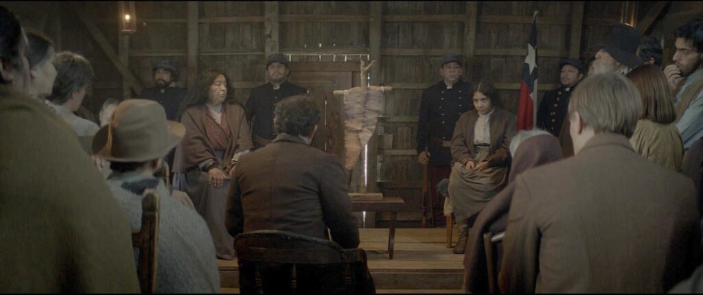 Centred around the colonialism of German settlers on Chilean land, we follow the young Rosa Rain – a native servant who attempts to seek justice for the killing of her father by her master, the brutish Stefan. She first goes to the mayor, then the church, before she’s finally told to search for it within herself. As the earthy cinematography and brooding, bass-heavy score lead the way, we track Rosa as she meets Mateo – a mysterious man who leads her deep into the woods where she will find a group of native sorcerers who call themselves La Recta Provincia.