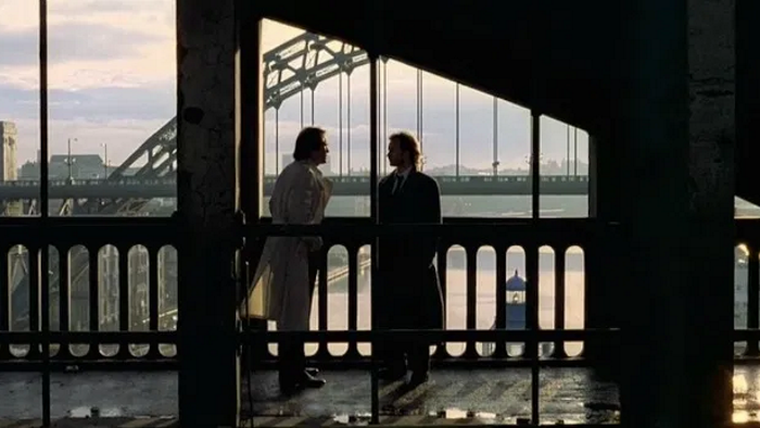 The relationship between Finney and Cosmo is obviously meant to be analogous to the Special Relationship, a phrase minted around the time Stormy Monday was released to describe the Anglo-American partnership Thatcher and Reagan forged. At times the political commentary is a hair away from Oliver Stone levels of subtlety, such as a scene where Brendan passes through a mall full of stars and stripes listening to a DJ offer prizes to anyone wearing an “I Love America” t-shirt. But then Figgis cuts to Melanie Griffith as Kate, the mysterious American woman Brendan falls for, neatly encapsulating the love-hate attitude the film has towards the US.