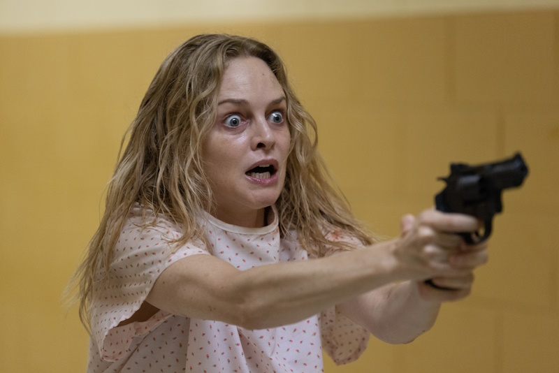 This sordid tale begins in a psychiatric facility where Dr. Elizabeth Derby (played by an amusingly intense Heather Graham), has become the patient. Looking more than a bit like Elisabeth Moss in the third act of The Invisible Man, she’s been straitjacketed up, absolutely inconsolable, and screaming about burning an unidentified body. Her colleague and best friend Danielle (Barbara Crampton – a stalwart of Gordon and on-screen Lovecraft in general), wants to know what the hell broke her mind, and so begins Elizabeth’s ludicrous tale of schizophrenic patients, an evil entity eager to explore all of life’s pleasures, and more than a few intimate trysts with people both familiar and uncanny alike.