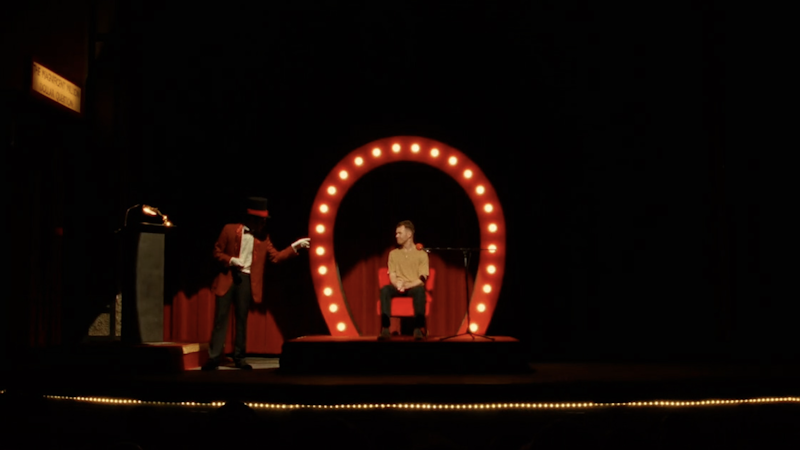 Before Whitt can be released onto the world, the show stops him in his tracks as it preys on people desperate for fame, drawing in those with lower moral compasses who’d do anything for a chance at the big time. Sean Meldrum plays Whitt as a vessel for anything, and his frustration and anger at struggling to be famous bleeds through everything he does, leaving shadows of desperation in their wake that unhinge his centre and make him willing to be and do whatever the viewers want – signifying that he has no sense of self. My favourite actor in this episode was Dan Ambramovici (the Host), who struck a perfect balance of camp, enthusiasm and manipulation that created a seething dark underbelly to the game show, making him the best catalyst to reveal that Whitt is not, and has never been, in control.