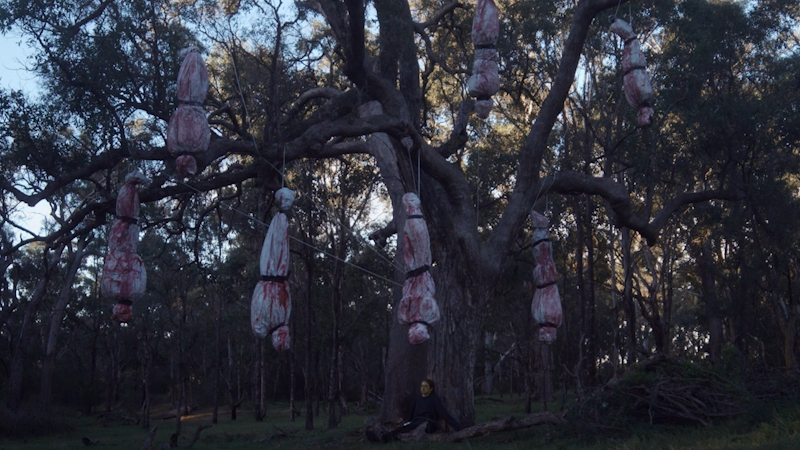 This twisted tale of the Antipodean wyrd follows Grace (Meg Clarke), a young woman who returns to the scarcely-inhabited ex-mining town that she grew up in following the death of her estranged father and the mysterious disappearance of her beloved brother, David (Gautier de Fontaine, seen earlier this year in Lorcan Finnegan’s The Surfer). Determined to locate and rescue her missing sibling, Grace enlists the help of her old schoolteacher, Mr. Green (Leighton Cardno), to guide her in search of an alleged woodland commune, inhabited by junkies and drifters who left the dying town in search of a new life out in the wilderness. However, when Mr. Green mysteriously vanishes from his tent overnight, Grace is left to fend for herself against the terrors that lurk in the darkest corners of the forest – ones which have been lying in wait for her and her family for a long time.