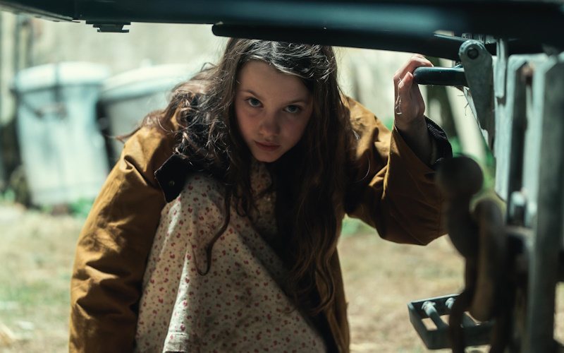 The close alignment with Willow is another strength of the film, and Caoilinn Springall is up to the task of displaying a gravitas and poise that’s beyond her years – her scenes with Ashleigh Cummings giving a genuine sense of mother and daughter sharing precious time together. Cosmo is gruffly dependable, offering comfort and stolidity as needed, but Kit Harrington receives relatively little screen time despite his top billing (and being the most recognisable face in the cast) – his distance from the viewer paralleling that of Willow’s. The innocence and confusion of a child is expressed through low angled shots that illustrate the expansive spaces and large figures around her, and the suspenseful set pieces sometimes play out in slow motion, drawing the viewer more deeply into Willow’s perception. As we feel Willow’s fear and uncertainty, we also experience her joy – especially in the aforementioned shopping trip with Imogen, and a touching scene in the woods between Noah and Willow. Nonetheless, even this scene, complete with games about monarchy, has unsettling moments that point to a darker, and possibly all too believable circumstance.
