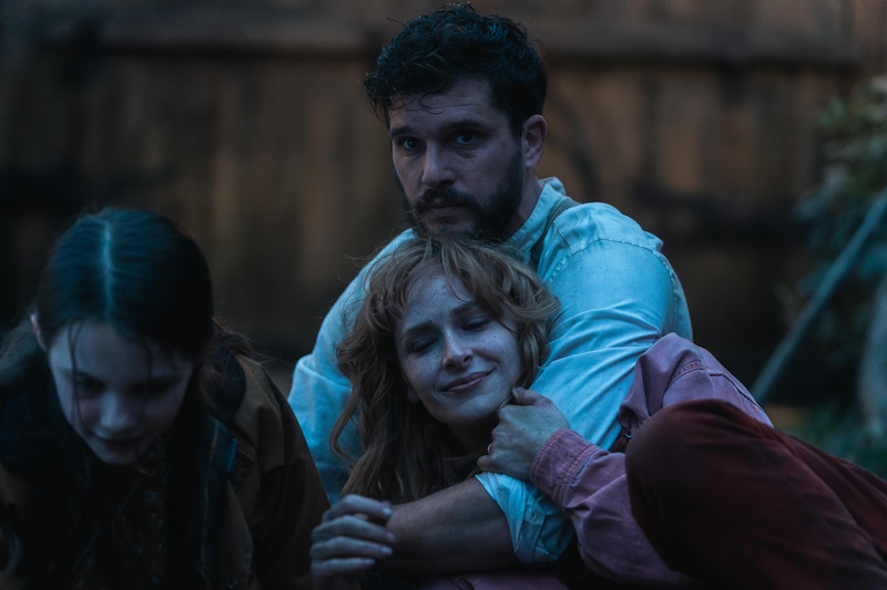 As with most horror, the central theme is family – in this case the isolated household of Noah (Kit Harrington), his wife Imogen (Ashleigh Cummings), their young daughter Willow (Caoilinn Springall), and maternal grandfather Waylon (James Cosmo). They live in a dilapidated house located in rolling countryside that includes evocative woods, and completed with a ruined castle. From the get-go we follow Willow in this strange environment of secrets and uncertainty, as she watches her father being taken away (along with a pig), while her grandfather reminds her not to be out after dark. Occasional moments with her mother are charming, yet tinged with a sense of danger that prompts both the character and audience to wonder what’s actually going on. Willow also struggles with asthma, needing an inhaler at times of stress or exertion and, surprise surprise, she experiences plenty of those.