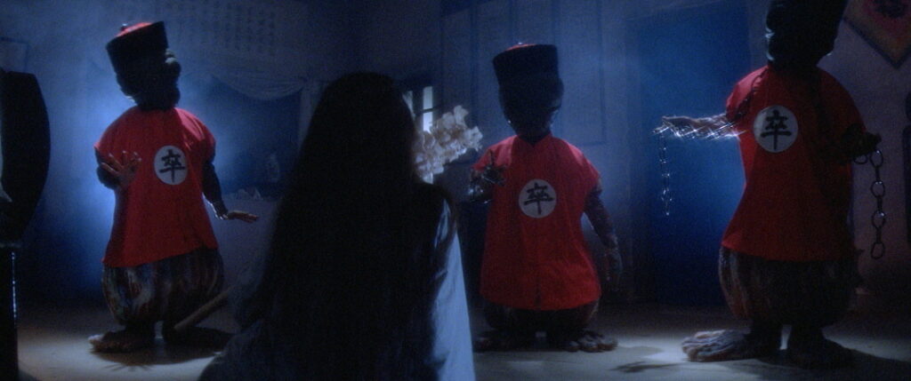 The plot only gets thicker from there as Ma is killed (for realsies this time) by his cohorts eager to cash in on his death, with the promise of his estranged wife and his son inheriting the bounty at his funeral. As his ghost rises from the grave, Ma convinces Wah to aid him in his quest for vengeance roping Second Uncle Yee (Lam Ching-Ying) along to give Ma the power to possess Wah’s body to fight his murderers. Unfortunately, the selfish spectre leaves Wah’s body to die and the fight is now on to bring Fat Boy back from Hell. Through chicken weddings, catching beetles and fighting egg-loving demon bodyguards, Wah’s new wife stops at nothing to bring back her beloved from the clutches of evil.