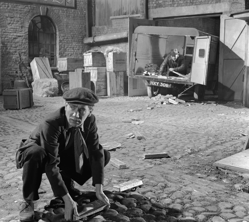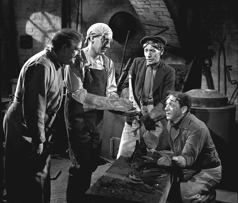 The Lavender Hill Mob was evocatively shot on location on London streets still bearing the scars of WWII, and gained some constrasting continental glamour in scenes shot on the banks of the Seine and the Eiffel Tower, including a memorable sequence in which Guinness and Holloway give chase to a party of schoolchilden who have unwittingly purchased one of the gold replicas of the landmark. Whilst we see the two actors launch into their pursuit on top of the tower, the dizzying descent downwards was conducted back at Ealing, the art department recreating a section of its spiral staircase with a vertical axel through its centre. Guinness and Holloway merely had to run on the spot and let the back projection do the rest.