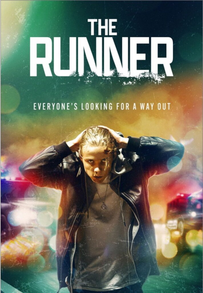 The Runner tells of Aiden (Edouard Philipponnat) – a troubled teenager who crashes a car with his best friend, Blake (Nadji Jeter), while in possession of drugs – in and on his person. Instead of going to prison, the police give him an out: risk his life, and go undercover to bring in the dangerous drug kingpin, ‘local legend’. Yes, that’s really what that character goes by. There are also flashbacks to Aiden’s relationship with a childhood sweetheart, Layla (Kerri Medders), and the usual Hollywood high school hi-jinx. Adding in the unpredictability of a non-linear narrative not only muddies matters but also creates character inconsistencies and plot holes.