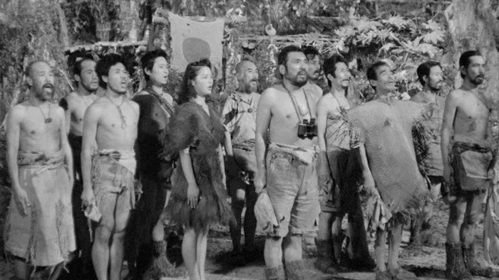 It’s World War II and we are with a crew of Japanese soldiers as they crash in the stormy waters washing up on volcanic rock rife with greenery somewhere between their mother nation and Papua new guinea in the Pacific. Already on the island are Kusakabe and Keiko (Akemi Negishi), with the arrival of the soldiers that make Keiko the only woman deserted on this island. Over the course of seven (in film) years, Von Sternberg uses the isolation of these men and woman to depict how concepts like humanity, respect, and pride disintegrate leaving only self-serving animal indulgences. All rationality and discipline get washed away with their coconut wine and the waves, the power of being the only woman places a great deal of pressure and stress of Keiko. She is a queen, a prize to be won and fought over. A prize that results in bloodshed once the survivors happen upon the armed wreck of a fighter plane in the second half.