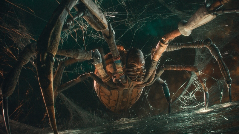 The premise at the heart of everything is superb – a group of people locked in a barbershop have to tell stories while getting their haircuts, in order to fuel the engine of some mysterious unseen thing. The idea of a spaceship being run on the power of stories feels very Moffat to me, but I don’t mean that in a derogatory way (sometimes I do, just not this time), as Moffat was all about the power of emotion being turned into something that was tangible. What Moffat didn’t have was this much budget. The Story & The Engine initially seems like a one-room play as the first twenty minutes are mostly set in this barbershop with Ncuti, a mysterious barber and a few unwilling visitors – then of course he opens the door to try and leave, and he realises the barbershop is in the middle of a massive outer-space web and on top of a gigantic spider.