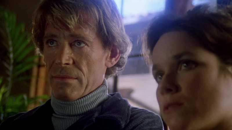 Vietnam war veteran Cameron (Steve Railsback), running from the police for an unknown crime, stumbles onto a closed film set and accidentally causes a stunt man to drive his car off of a bridge and into the river. He flees again, then later finds himself drawn to the movie’s larger war set piece shot on a local beach. After the scene has wrapped an old woman is swept in from the sea. Cameron saves her from drowning, only to find out it’s the film’s young lead actress Nina (Barbara Hershey) in heavy prosthetics. Cameron is the centre of attention of the cast, crew and public as he’s congratulated on his heroism, which catches the eye of flamboyant director Eli Cross (Peter O’Toole). When a producer threatens the film’s delay and potential closure over the unknown fate of the stunt man on the bridge, Eli offers Cameron a job as the new stunt man in order to keep his dream production alive. Eli, having clocked Cameron’s likeness in a police warrant, convinces Cameron to assume the identity of the missing stunt man for their mutual benefit. Cameron lives his new life, falls in love with Nina, and clashes with Eli. He loses his grasp on reality, unable to distinguish between fictitious film sets and the violent scenes he finds himself acting in as if they are truly life or death.