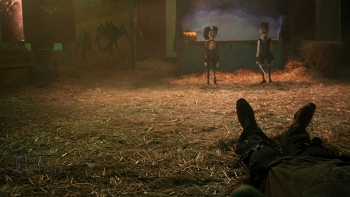 Todd Tucker has produced an intriguing left turn when using the context of all these young new horror directors who bend over backwards to show how influenced they are. We join Tim (Caleb Thomas) who pranks one of the girls who lives on his street with his gory prosthetics. Eric Roberts appears in this scene for an odd cameo to chastise the kid for scaring the life out of his daughter, setting up Tim in such an unsympathetic light is, also, an odd decision. Throwing himself into his hobby, alienating his poor mother (Sara Lancaster) who is struggling to keep a roof over their heads, he retreats into Halloween. While pottering around the house, he finds a strange book in his attic that details a creature called the trickster. Visiting the local store with his Mother, and openly lusting after the pretty shop assistant (April (Annie Reed)), he meets her boyfriend who eventually beats Timmy up. For sympathy to only come at the hands of a beating is shallow. Upon returning home he meets the trickster who promises that he shall have his revenge whereby the mysterious monster will kill these mean kids by scaring them to death (well… sort of).