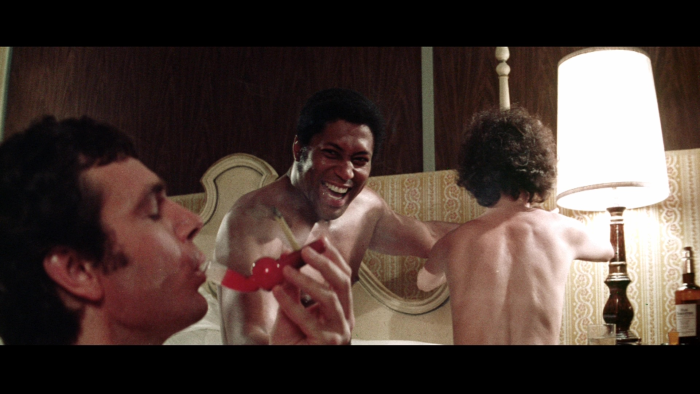 The Witch Who Came From the Sea is eccentric enough to incorporate elements from most of these projects. It begins with Molly, played by Millie Perkins, sat on the beach with her puzzlingly-named nephews Tadd and Tripoli, ogling muscular men working out. (Wrestling: check) Cimber’s camera makes a clumsy but laudable stab at female gaze, zooming in on their crotches (softcore: check) before she takes two of them home for a threesome. One of the men she picks is Jim Sims, star of Cimber’s well-regarded blaxploitation film The Candy Tangerine Man; unfortunately for his character, the narrative he’s in is less akin to that empowerment fantasy than the Freudian, psychosexual stew of Butterfly. In scenes that drew the attention of the British authorities, Molly gets a razor out and castrates the men.