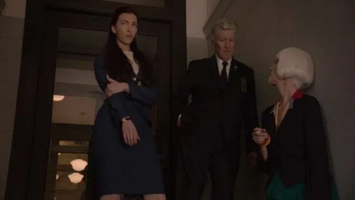 Diane doesn’t like her very much, that’s for sure. But we shouldn’t like Diane, considering we actually see her get a text from Mr. C in this episode. On initial viewing I stayed in happy denial for a while longer. It’s odd that I should feel such dedication to a character we only met three episodes ago – particularly considering I was always on the “Diane is an imaginary character” train during the original series. It’s a mark of how well Lynch and Frost have filled in the gaps, and how wonderful Laura Dern is in this role, that quickly became foolishly loyal to her. The scene of her smoking outside, trying vainly to get Agent Preston to return her icy stare, is a masterclass in non-verbal acting.